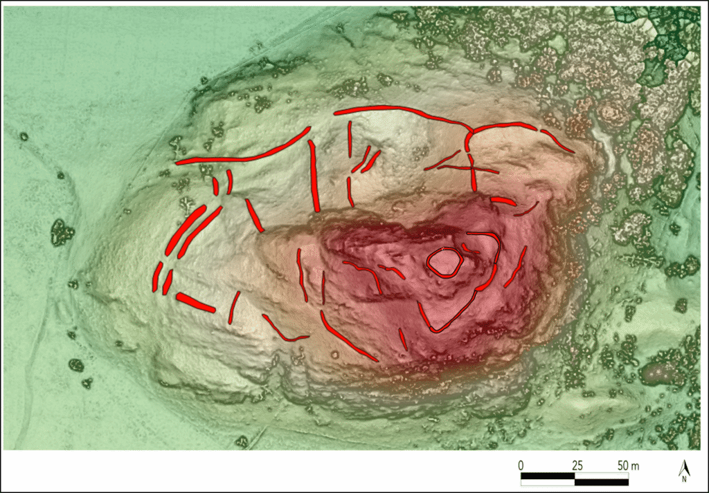 Photogrammetry-derived model of Dundurn hillfort with the complex defences mapped © University of Aberdeen