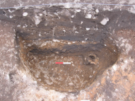 Fig 5: traces of the wattle lining from a small rectangular building © National Museums Scotland